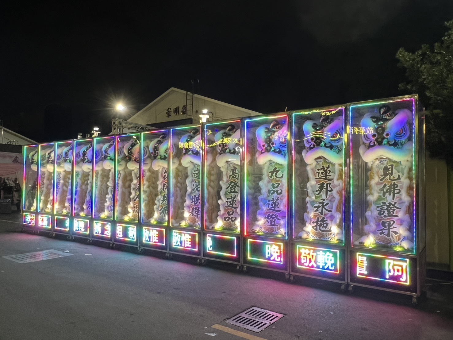 以靈獅之形,展現威嚴守護的精神,幻彩光芒交織,象徵護佑與祝福並存。 守孝靈獅堅定守護靈前,寓意鎮煞辟邪,庇佑亡者安息無憂,生者平安順遂。 幻彩燈光增添靈動之美,讓傳統守孝文化更添溫暖光彩,成為儀式中莊嚴又充滿祝願的代表。