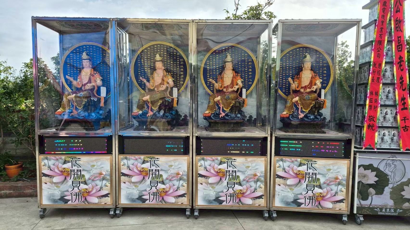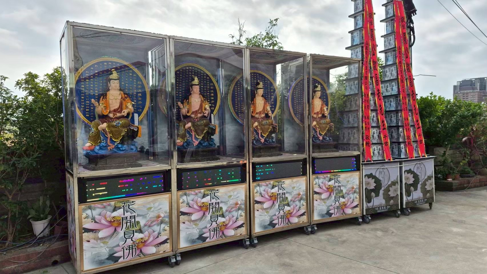 手持佛經,象徵以經典智慧普照眾生,以慈悲心懷守護亡靈,接引往生者得證善果。 佛像莊嚴宏偉,展現無邊慈悲與智慧光輝,不僅為亡者祈願超脫輪迴,也為在世者祈福平安吉祥。 持經觀音大佛,是治喪儀式中最莊重神聖的象徵,凝聚無盡祝福與深遠守護,讓追思與祈禱隨佛光長存。