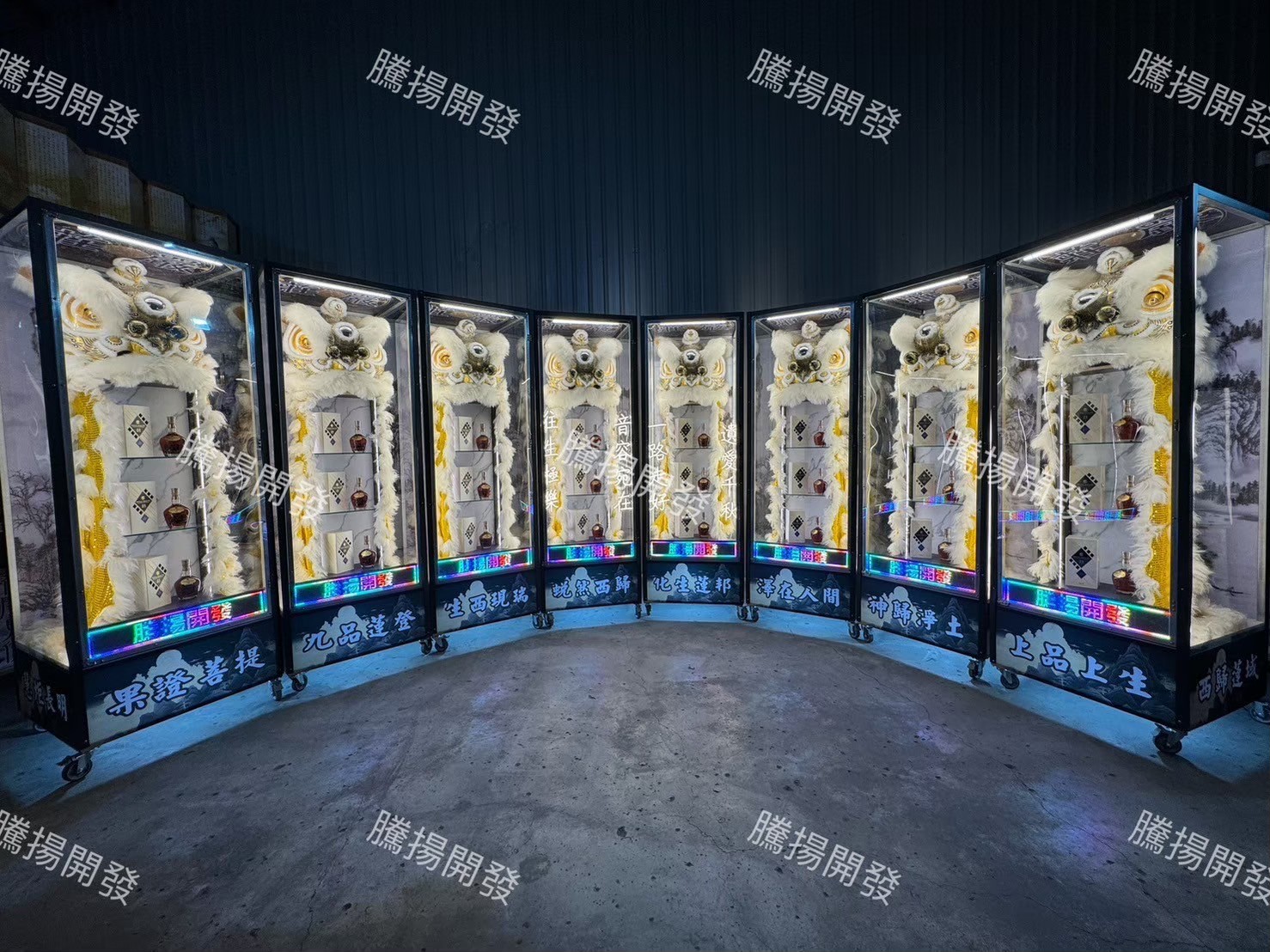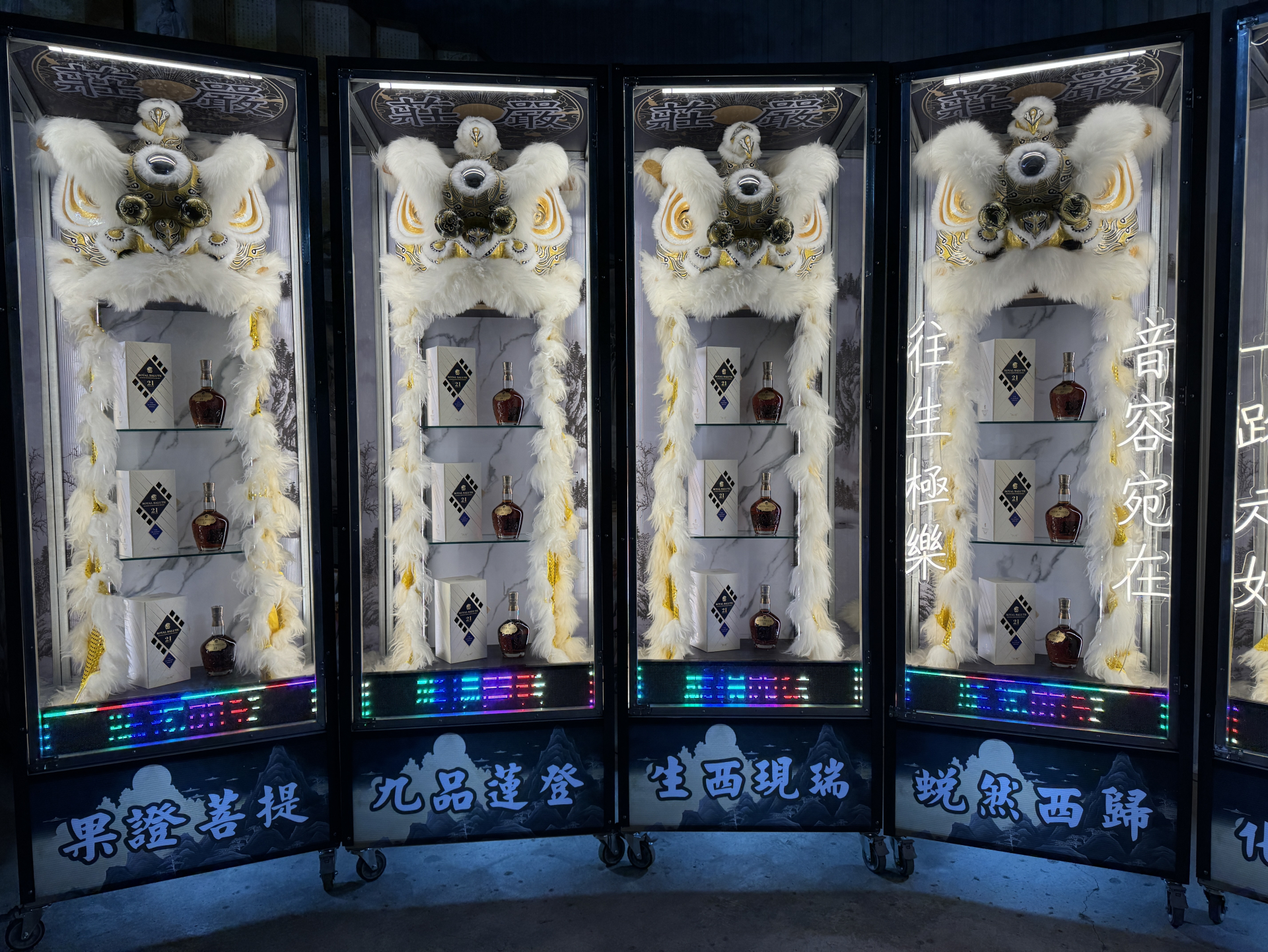 以酒櫃為載體,象徵圓滿、祝賀與敬獻,搭配白光靈獅,展現清淨無染、堅定守護的精神。 靈獅昂然矗立,寓意鎮煞辟邪,守護靈堂清淨安寧,同時承載深沉的思念與無盡的祝福。 純淨白光象徵著真摯與潔淨,讓追思儀式更加莊重典雅,成為場域中最莊嚴溫暖的守護力量。